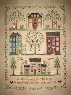 I so love how it turned out! As you can see I put our surname at the bottom and I also used some overdyed floss for my houses. There are more details on my blog. What an awesome project!! What a wonderful design!!!!